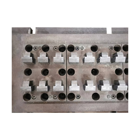 缝合模是一种冷冲压模具,采用机械冲剪缝合原理,在上下两层带钢搭接处冲出若干阶梯状切口,在张力牵引下各切口前后错位移动、紧密咬合,从而将两卷带钢的头尾铆接缝合在一起。上模的下表面设有向下突出的凸台(冲刃),下模设有与之凹凸配合的凹槽;四导柱模架导向可靠,保证上、下模定位和动作的准确性。其加工精度高、耐磨性好、强度高、韧性好、抗冲击,具有结构合理、操作简单、缝合牢固、高效耐用等特点。适用于彩涂、酸洗、铝带等板带连续生产线各种规格薄带的缝合。