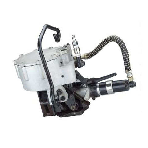 一体式气动打捆机将拉紧、锁扣和切断功能在一台机器上操作完成。操作轻松简便,捆扎牢固,打包动作准确。打包机的动力是气源,气动束紧。一体式组合结构、操作简便、捆扎迅速、劳动强度低、安全可靠、坚固耐用。只需一个操作人员便能完成捆扎带的抽紧、锁扣或熔接、剪断余带等全部动作。可手持操作或悬挂使用,捆带有钢带、塑钢带、全塑带。广泛适用于生产流水线上捆扎钢卷、板带、型材、管材、铝锭、钢筋、电解铜及大型物件的捆扎包装。