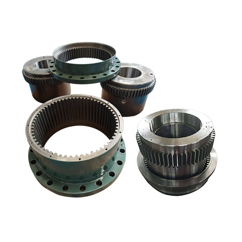 鼓形齿式联轴器由两个鼓形外齿轴套与一对直齿内齿圈等零件组成,靠内、外齿的啮合传递扭矩,并由鼓形外齿套在直齿内圈的轴线摆动(角位移)来补偿两传动轴线的相对位移。结构紧凑、形式多样,允许正、反方向回转;齿长的鼓度,使齿接触较好。具有传动能力大、角位移大、转动惯量小、传动平稳、效率高、寿命长等特点。广泛应用于冶金、重型、矿山、起重运输、通用机械等各类机械传动。