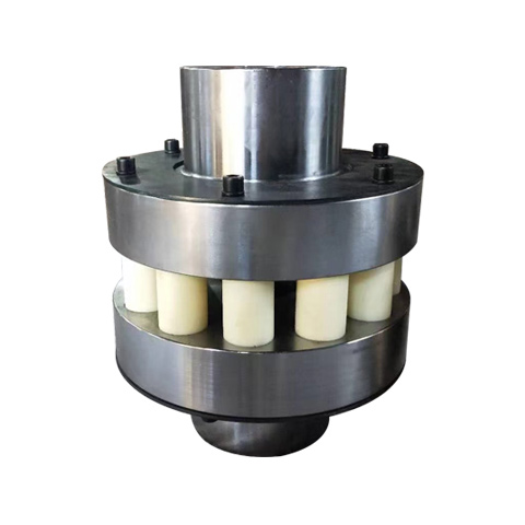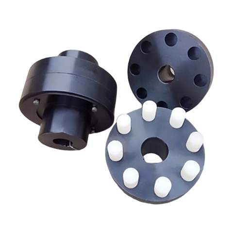 弹性柱销联轴器是利用若干非金属弹性柱销,置于两半联轴器的凸缘孔中,来实现两半联轴器联接、传递扭矩。弹性柱销选用MC尼龙或聚氨酯材料,有微量补偿两轴线偏移能力;半联轴器采用45#钢或ZG270~500制造。具有结构简单、缓冲减震能力强、运行平稳、容易制造,装拆更换方便等特点。适用于要求较低的中速、两同轴线的传动轴,不控制噪音环境的场合。