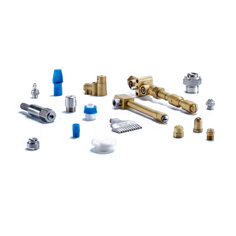 喷嘴是喷淋、喷雾、喷油、喷涂的精密元件,适用于液态和气态介质。其液滴分布均匀、喷射流冲击力大、压力和流量适用范围广,耐磨、耐腐蚀、耐高温等;结构紧凑、精密、喷射通道大而流畅、不易堵塞、覆盖面大等。依据工况选择不同的喷雾形状及材料,如扇形、空心/实心锥形、液柱流、方/扁形等喷嘴。广泛用于钢铁、化工、环保等各行业的清洗、除磷、喷淋、喷涂、润滑、冷却、除尘等。